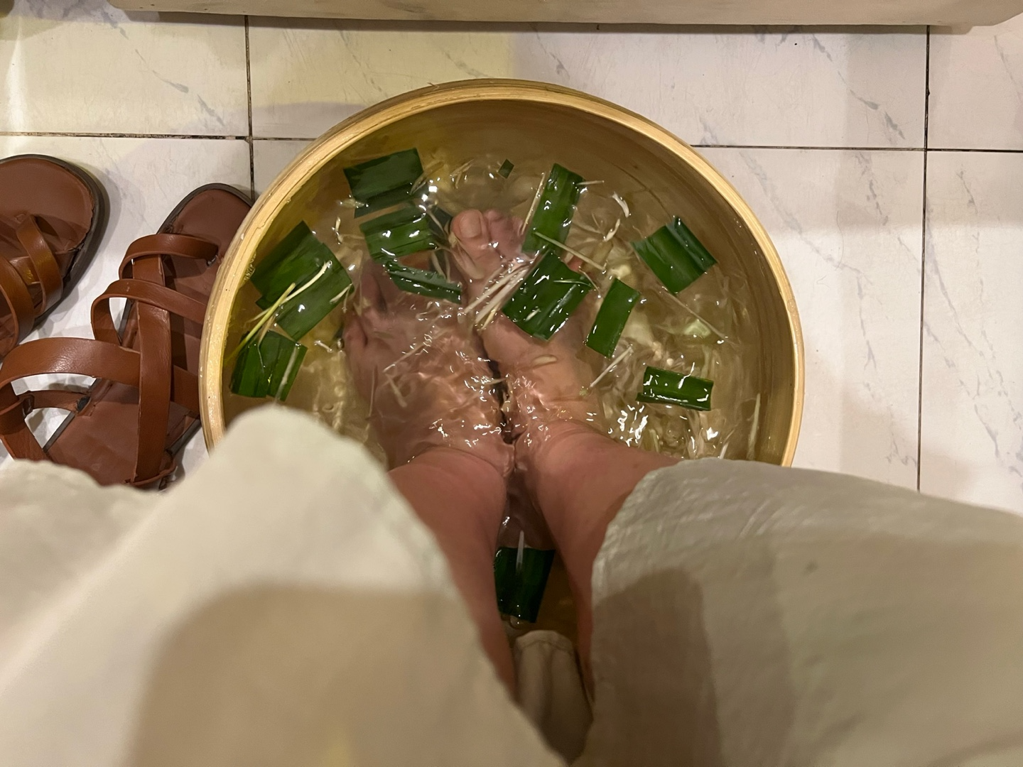 마사지 시작하면 이렇게 족욕 준비 해주시는데 안에 들어간 것 때문인지 괜히 발 시원해지는 느낌이었어요.