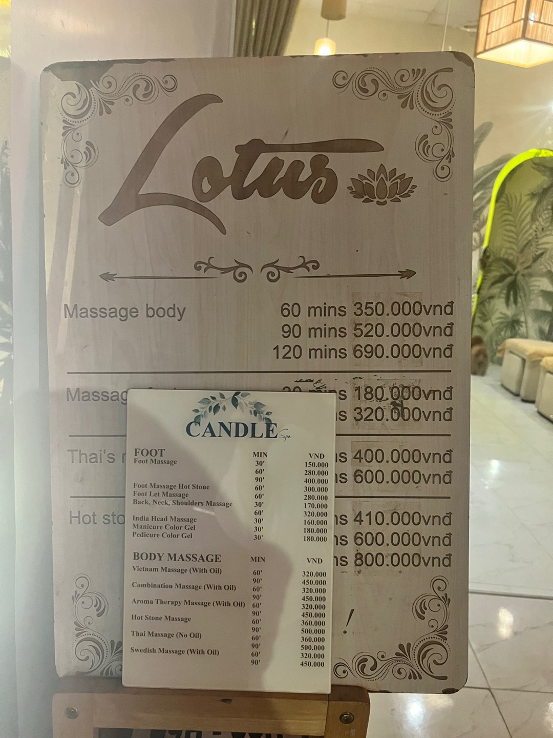32만 동으로 적혀 있지만 저희는 흥정을 해서 둘이 합쳐 52만 동 정도에 마사지를 받았어요!