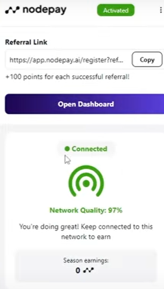 바이낸스에 Grass가 상장되었죠? 유사하게, Nodepay는 확장 프로그램을 활성화하면 자동으로 포인트가 적립되는 방식입니다. 향후 채굴된 포인트는 토큰으로 전환되어 에어드랍될 예정이니 무조건 참여해보자구요.