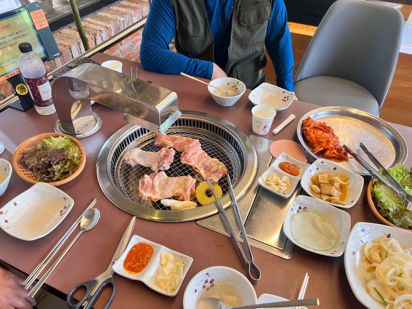 에어컨을 1대만 가동 중이었는데 숯불이 올라오니 약간 덥더라고요.