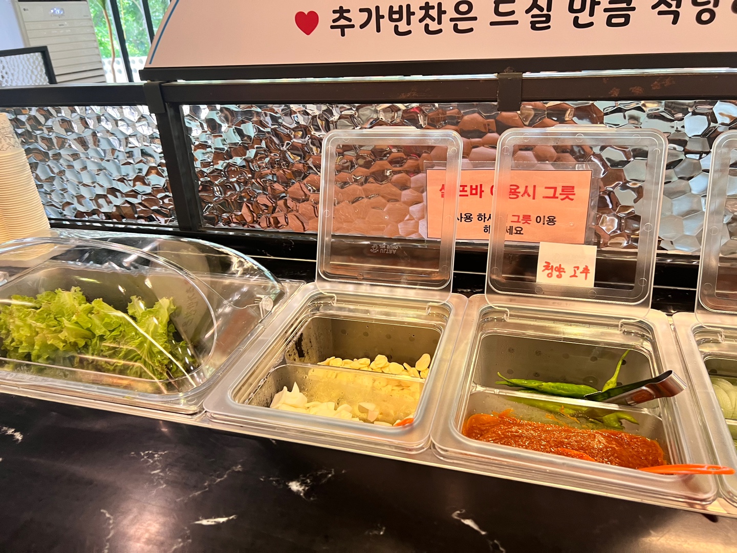 게다가 다른 반찬이나 이런 것도 전부 셀프인데 고깃값도 다른 곳보다는 비싼 편이라고 생각이 들긴 했어요.