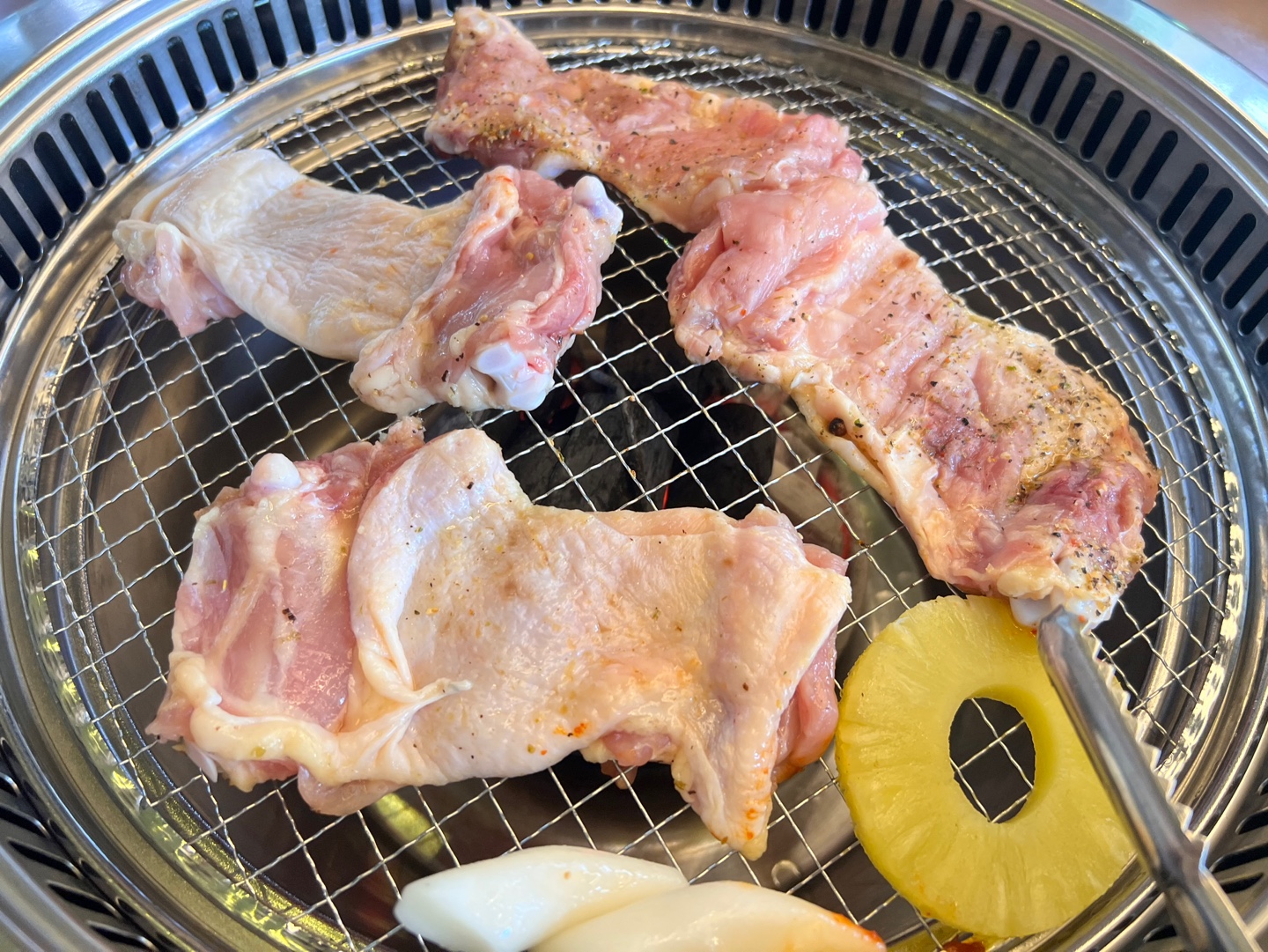 저희는 숯불을 좋아해서 숯불로 먹었고 간장, 소금, 고추장 세 가지 맛 중 소금 2인분, 고추장 1인분을 먹었어요.