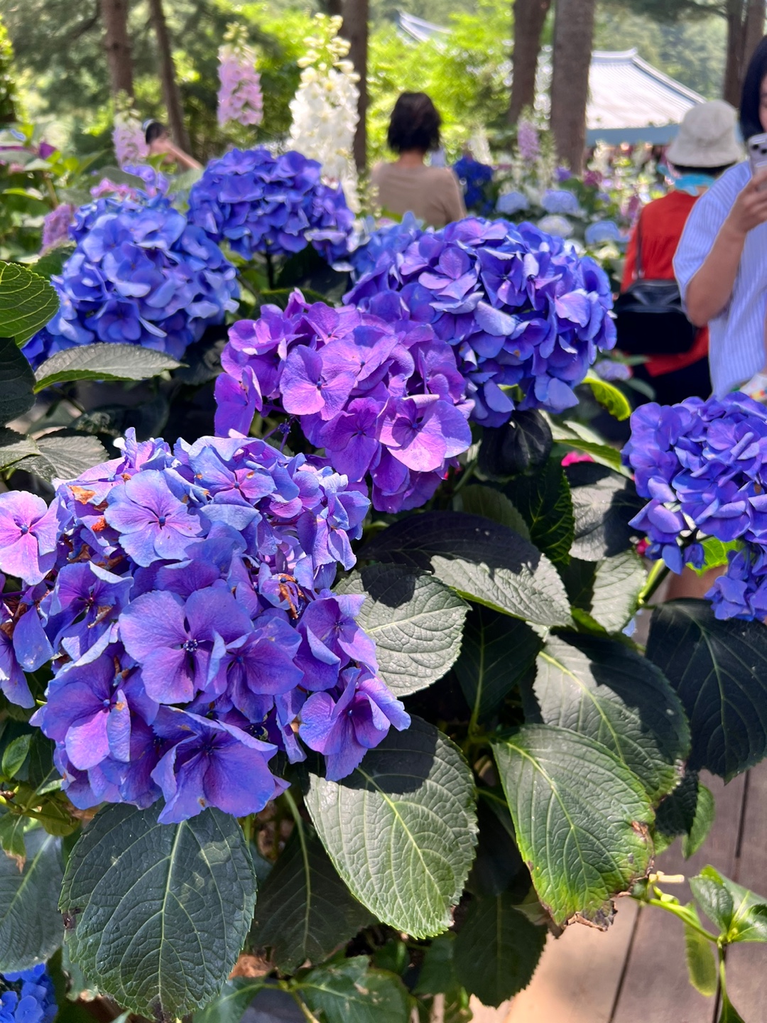 형형색색의 아름다운 수국들 보이시나요~ 보라색과 파란색 계열의 수국들이 많았어요.