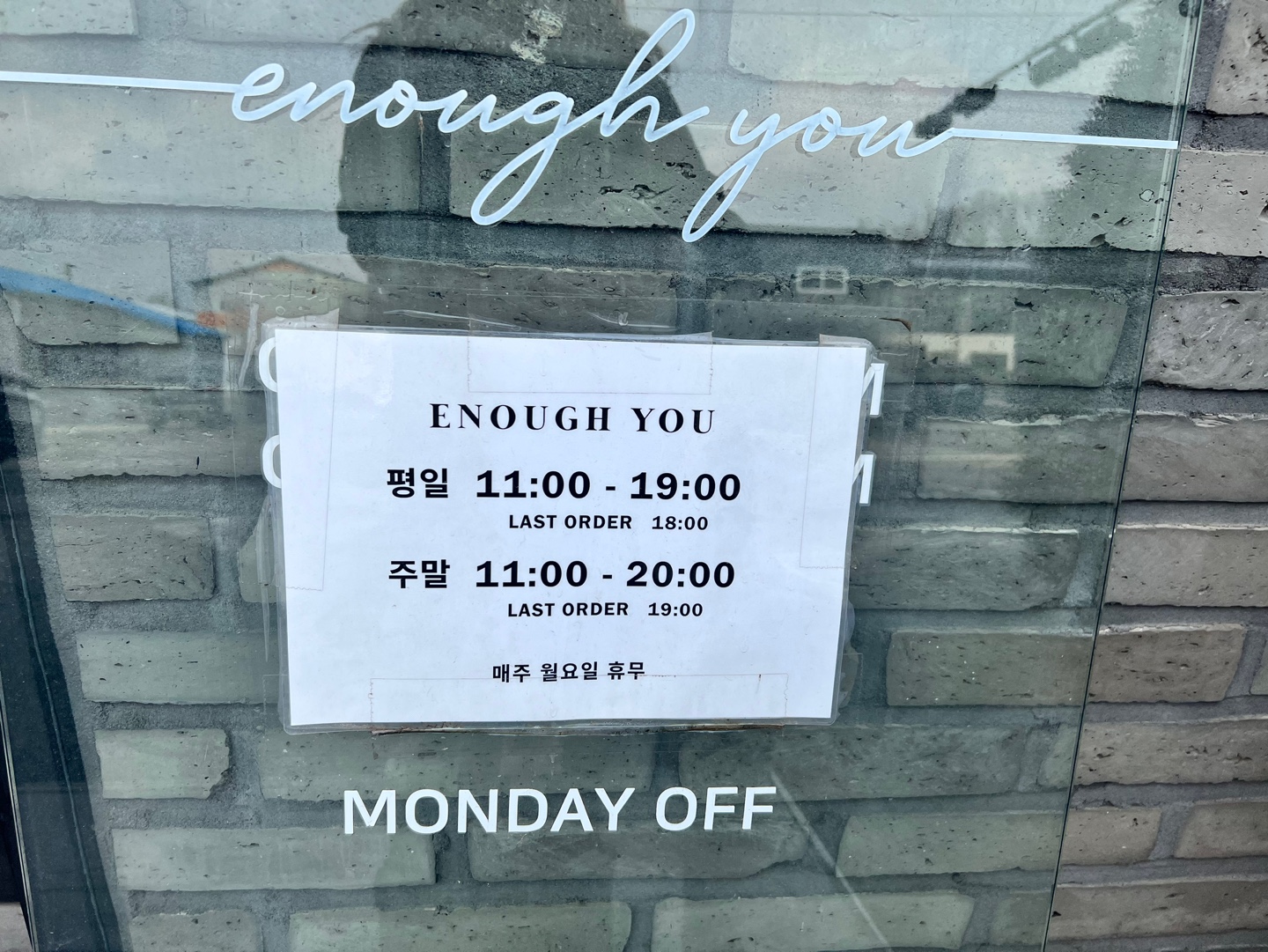 이너프유 외관이에요. 벽돌로 이루어진 외관의 감성이 느껴지나요..♥ 분위기 좋은 카페라는 게 느껴지는 외관입니다.