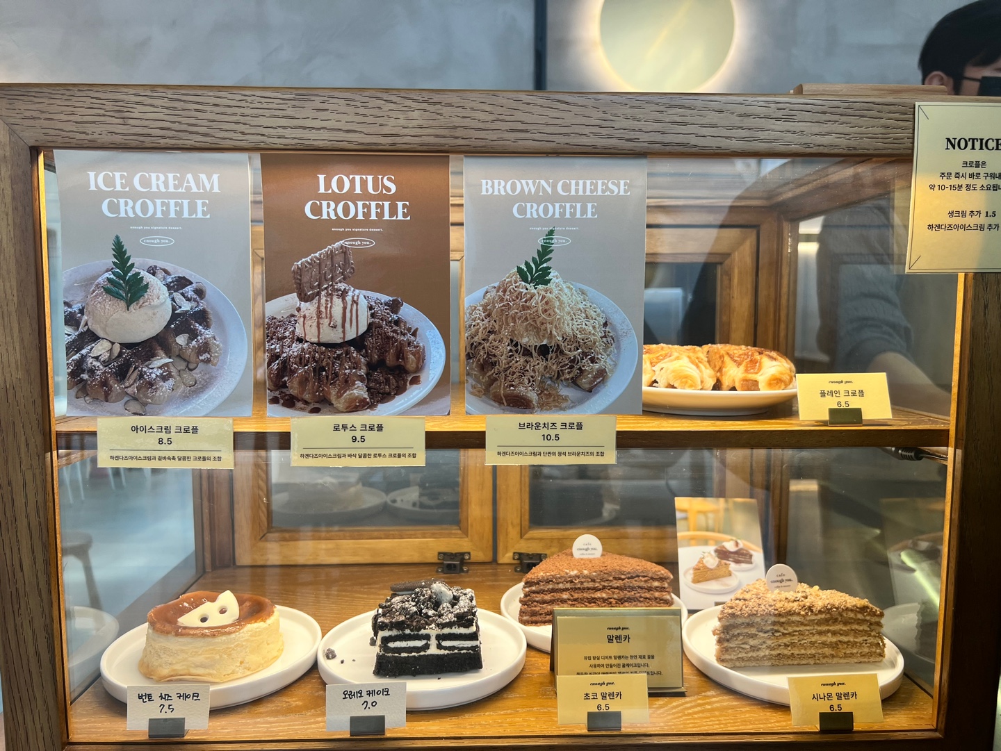 이너프유 카페 메뉴예요. 종류가 다양한 편이죠. 디저트로 크로플을 팔고 있는데 이 크로플이 정말 정말 맛있어요. 저는 이날 간 게 첫 방문은 아니고 재 방문이었는데 첫 방문 때 크로플 너무 맛있게 먹었어요. 쫀득하면서 부드러운 맛! 재방문했을 때는 배가 너무 부른 상태라 먹지 못했지만 다음에 또 가면 그때는 꼭 또 먹어볼 거예요.