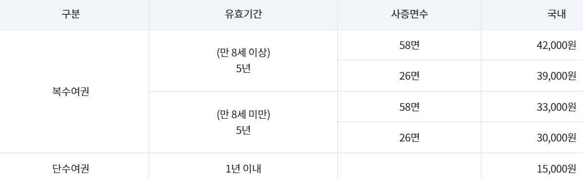 7월 1일 자로 여권발급 비용이 전반적으로 3000원씩 저렴해졌어요!