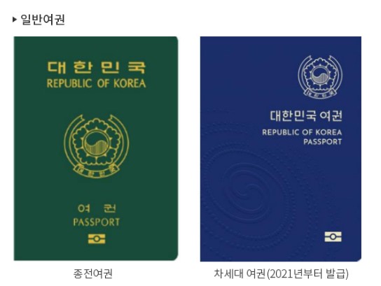 2021년부터 발급하고 있던 파란색 디자인의 여권을 발급받을 수 있습니다.