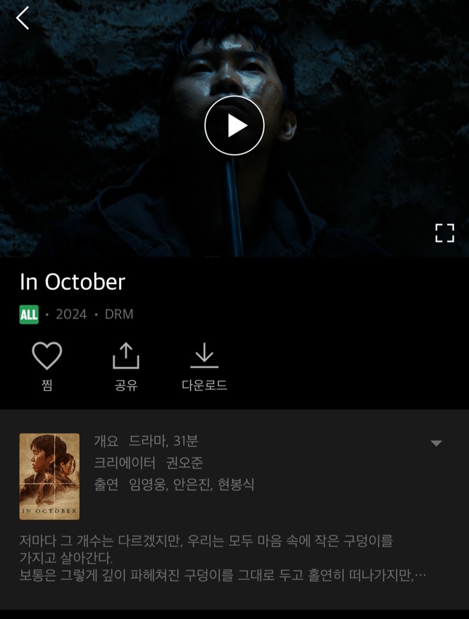 인악토버는 쿠팡플레이와 티빙을 통해 감상할 수 있는데요.
