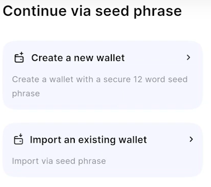 3) 1타 3피를 하기 위해서는 Import an exising wallet을 눌러서, 하이퍼 리퀴드에 연동된 지갑을 지갑구문으로 불러와주면 됩니다.