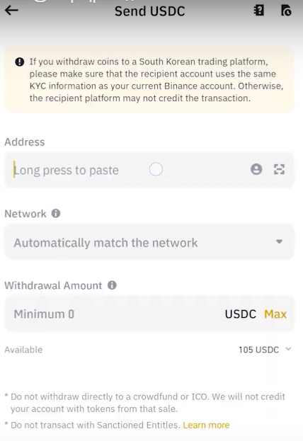 USDC를 보내줍니다.