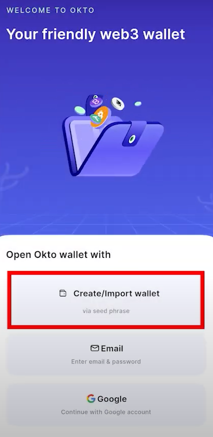 2) 그리고 어플을 열면 아래 그림과 같이 Create/Import wallet을 클릭해줍니다.